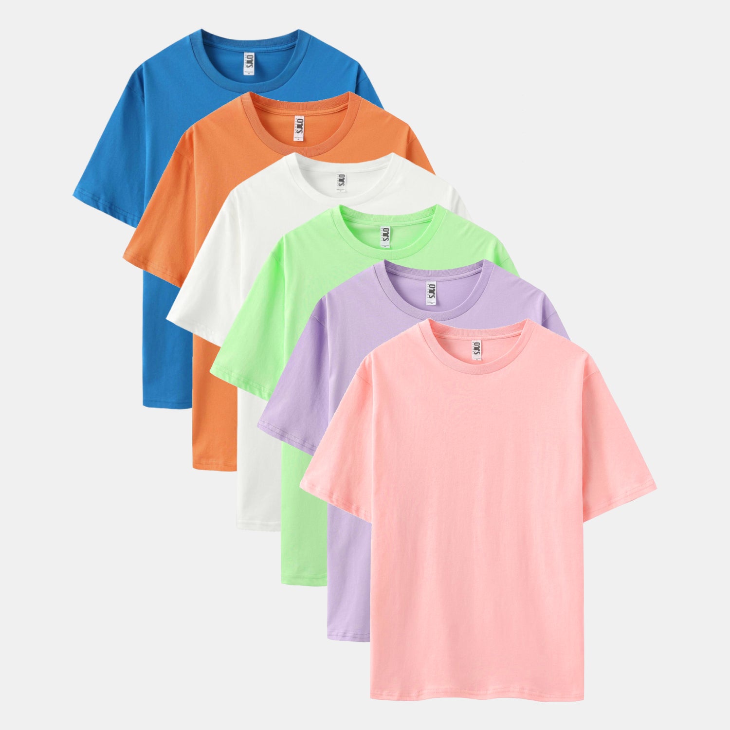 Unisex Solid 6-Pack Crew Neck(Turquoise/Desert Orange/White/Keywest/Soft Violet/Cupid)
